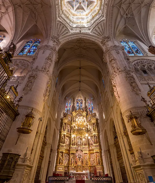 En su interior, la catedral sorprende por la riqueza de su patrimonio artístico. El coro tallado en madera, el imponente retablo mayor y la Capilla del Condestable son solo algunos de los espacios que cautivan a quienes la visitan.
